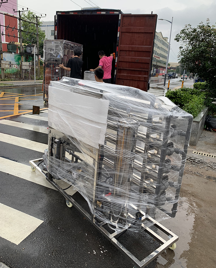 自來水---->原水箱---->供水泵---->多介質過濾器---->活性炭過濾器---->軟化過濾器---->保安過濾器---->高壓泵---->反滲透機組---->純水箱---->恒壓輸送系統---->用水點